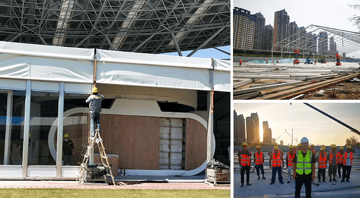 鋁合金中庭篷房適用場景:商業(yè)綜合體、酒店中庭、展覽場館、婚禮慶典、戶外活動
